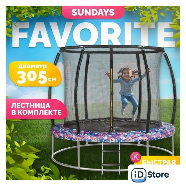 Батут Sundays Favorite Premium 10FT (смайл, с сеткой, с лестницей)